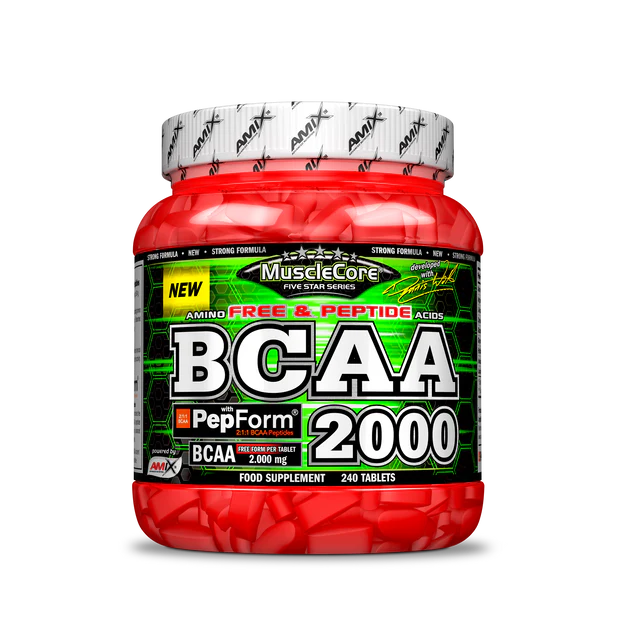 BCAA 2000 PepForm Musclecore 240 tabletas es un suplemento de aminoácidos ramificados en tabletas, práctico y fácil de integrar en la rutina diaria.