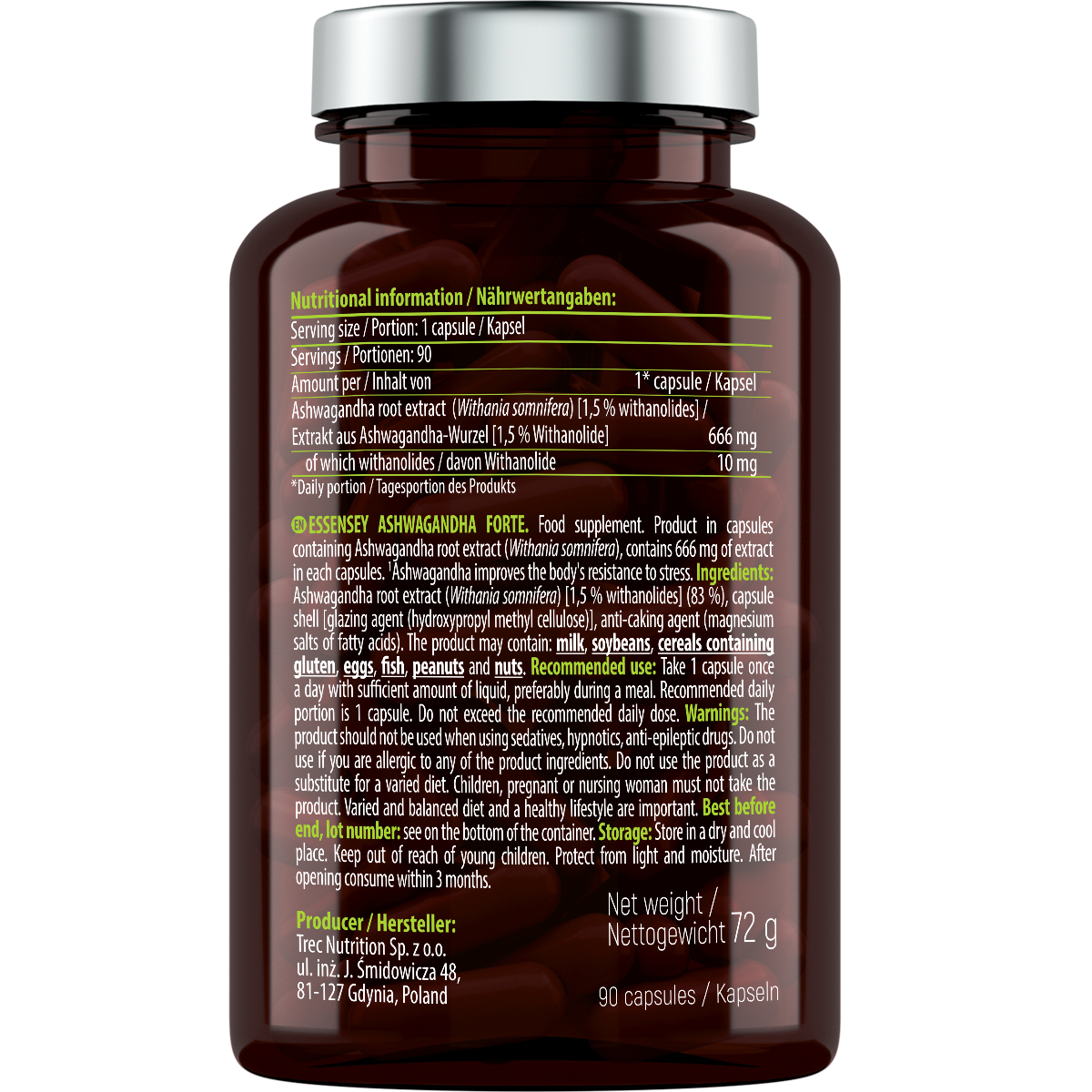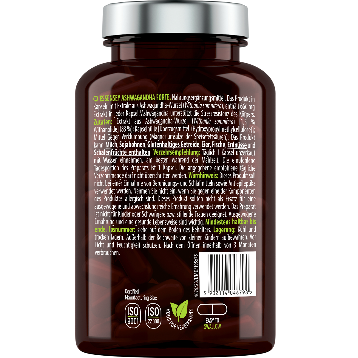 Ashwagandha Forte Essensey – 90 cápsulas. Complemento vegetal a base de ashwagandha ideal para el bienestar diario y el equilibrio del organismo.