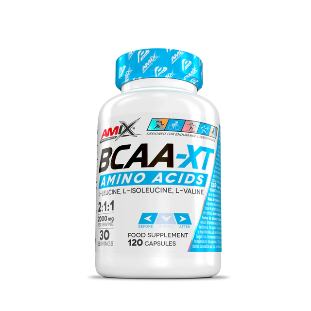 BCAA XT Amix Performance es un complemento alimenticio en cápsulas desarrollado por Amix Performance, formulado a base de aminoácidos ramificados y presentado en un formato cómodo y fácil de usar. Este producto se ofrece en un envase de 120 cápsulas, pensado para una suplementación diaria organizada y sencilla.