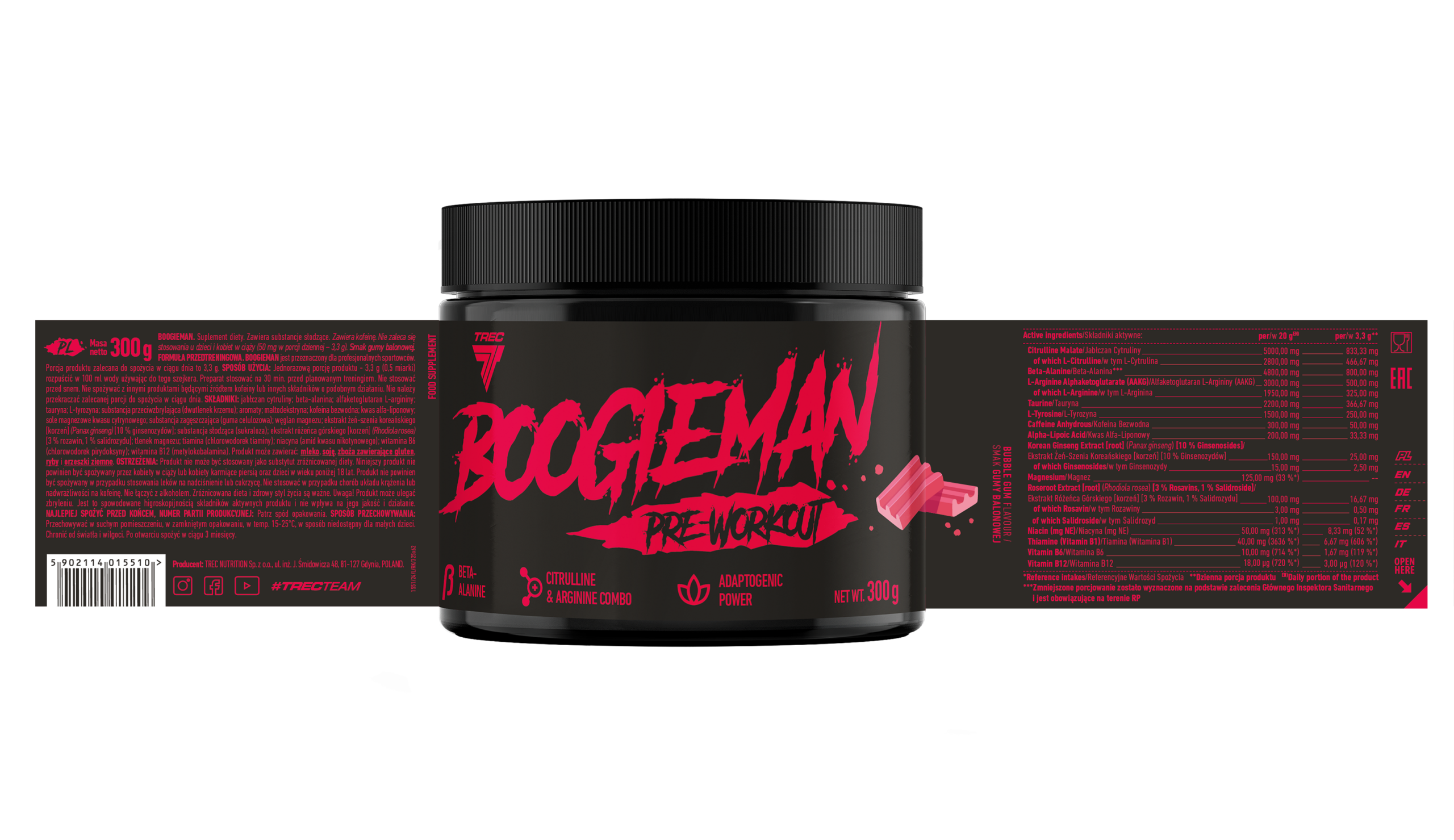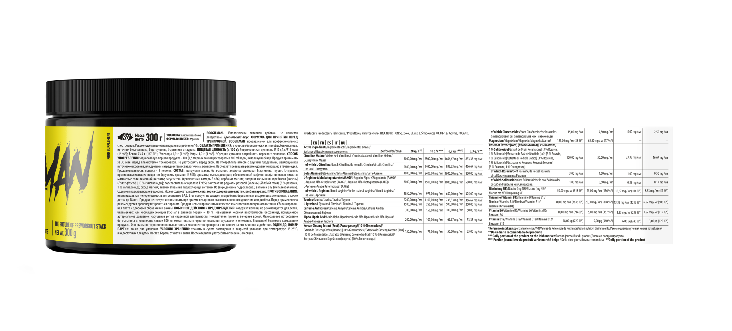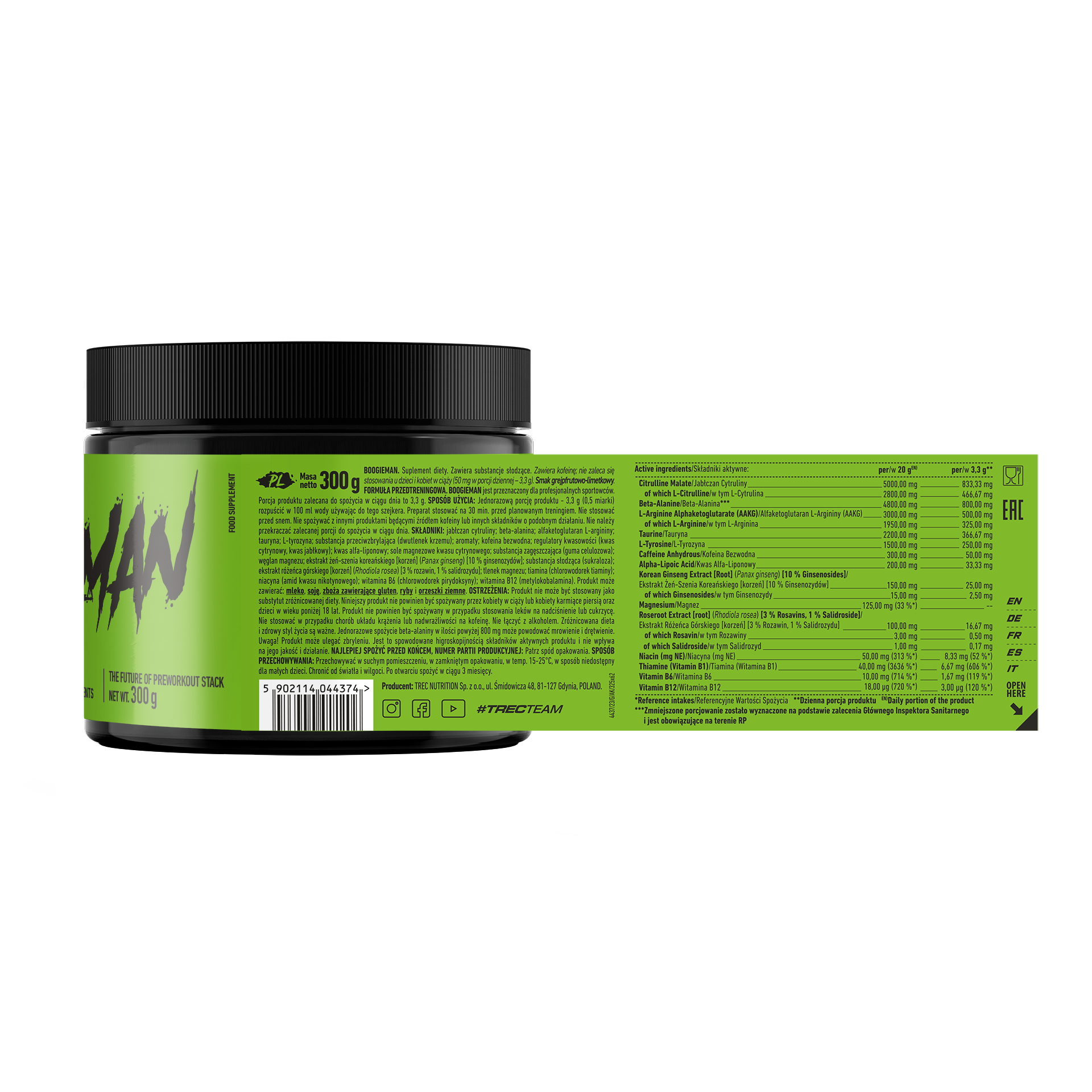 Boogieman Pre-Entreno Trec 300 g | Fórmula Pre Workout