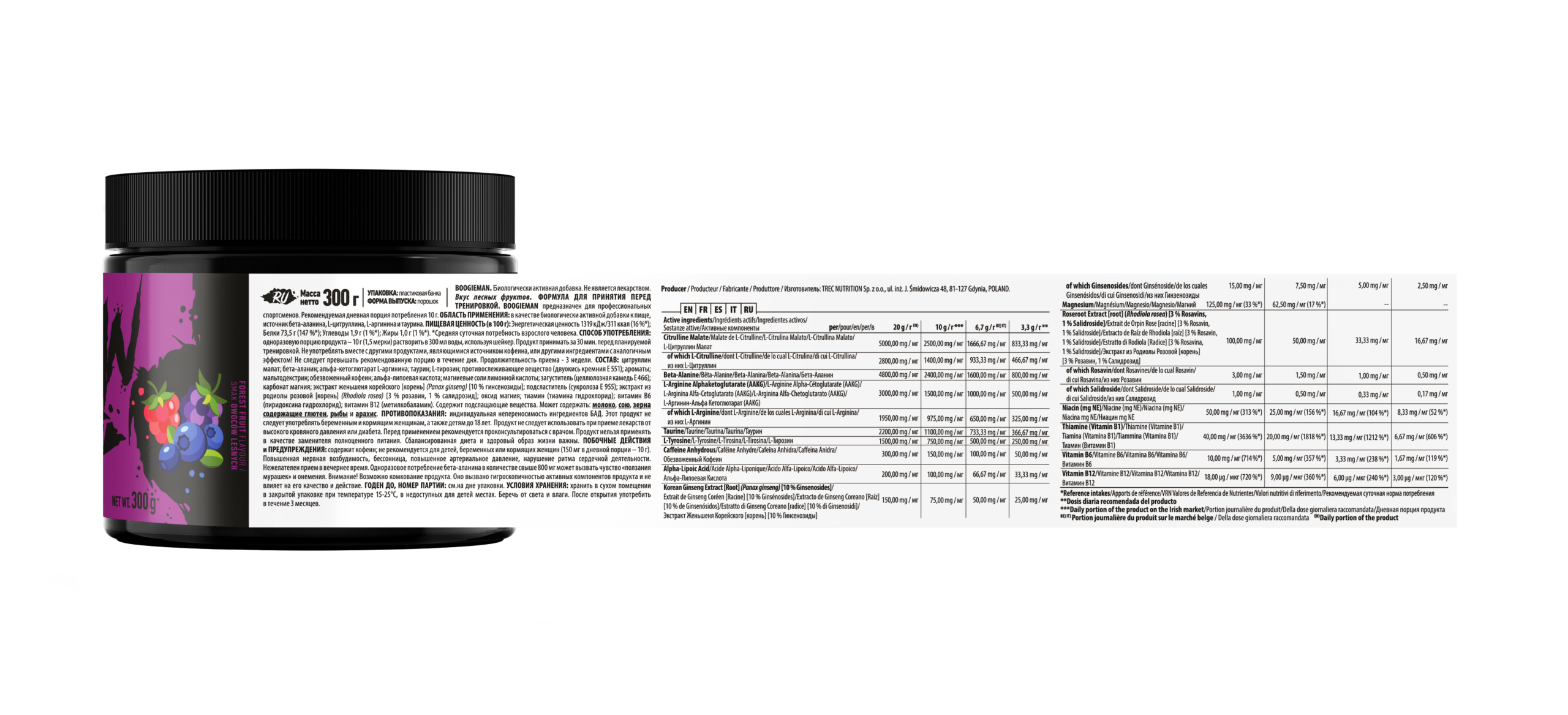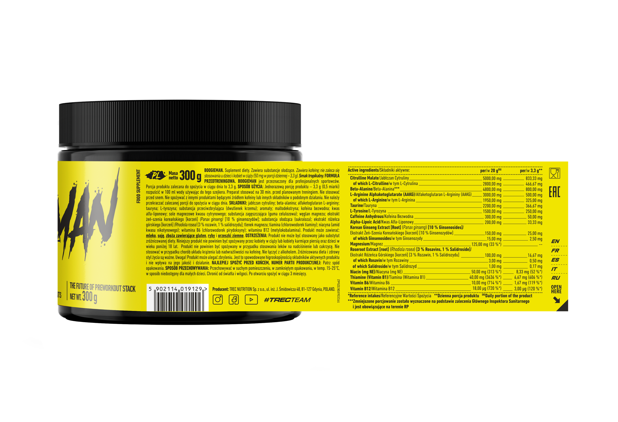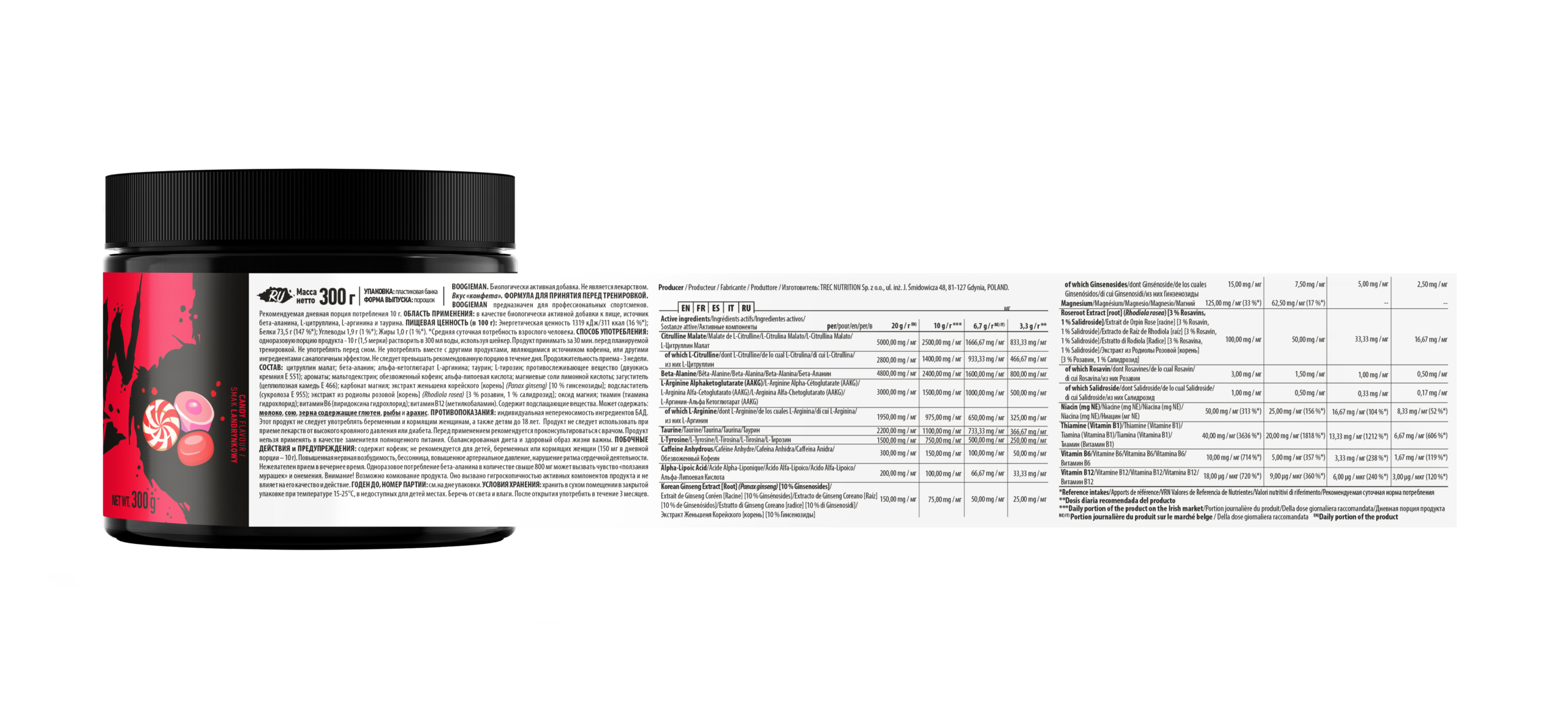 Boogieman Pre-Entreno Trec 300 g | Fórmula Pre Workout