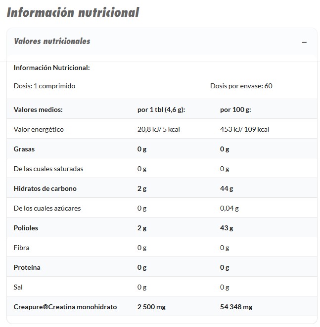El formato en tabletas masticables permite tomar la creatina sin necesidad de agua ni preparaciones previas. Esta característica facilita su consumo en cualquier momento del día y la convierte en una opción interesante para personas activas y deportistas que buscan simplicidad y comodidad dentro de su rutina de suplementación.