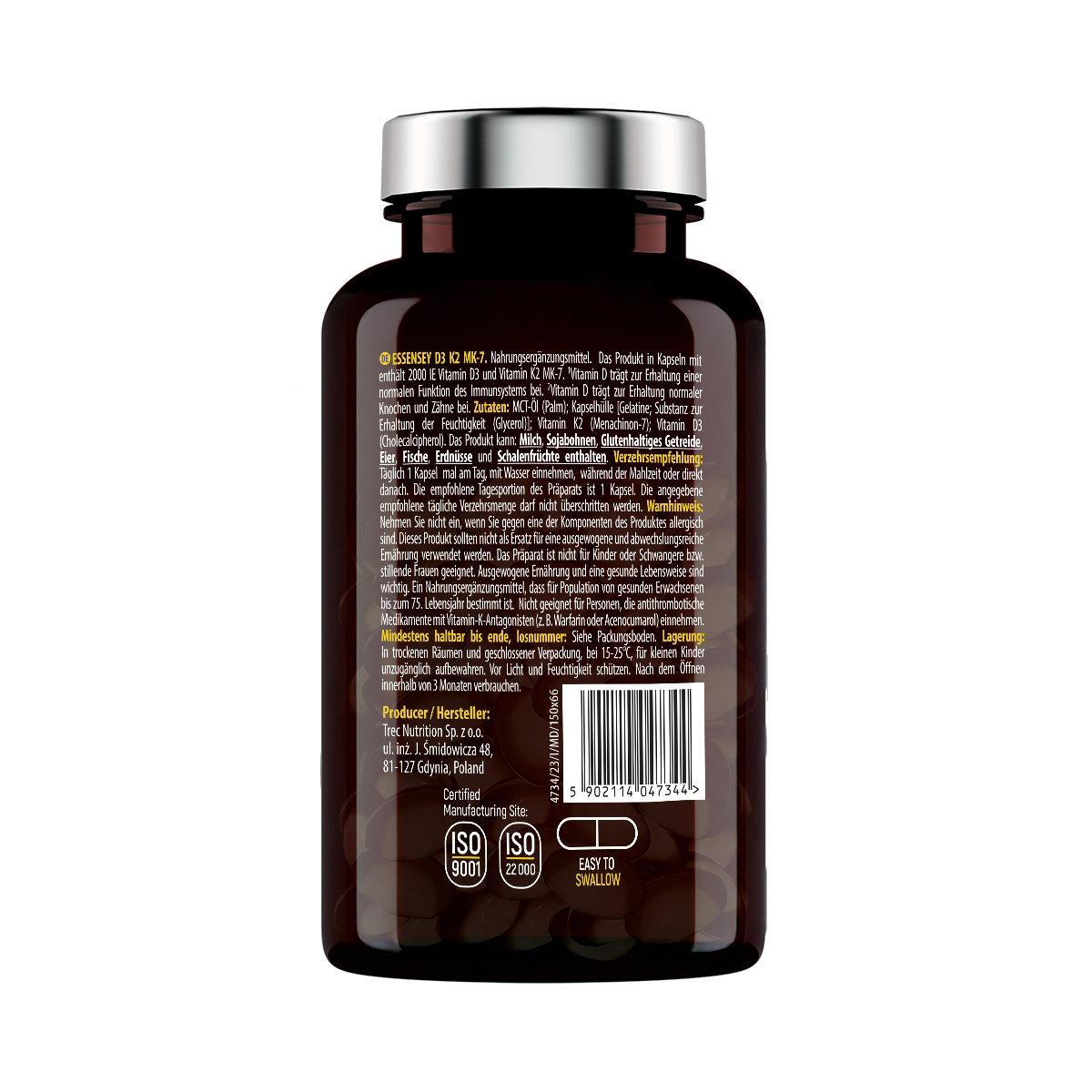 En conjunto, la D3 + K2 MK-7 Essensey representa una opción práctica para quienes desean complementar su alimentación con vitaminas D3 y K2 en cápsulas, manteniendo el control sobre la ingesta diaria y adaptándola a sus necesidades personales.