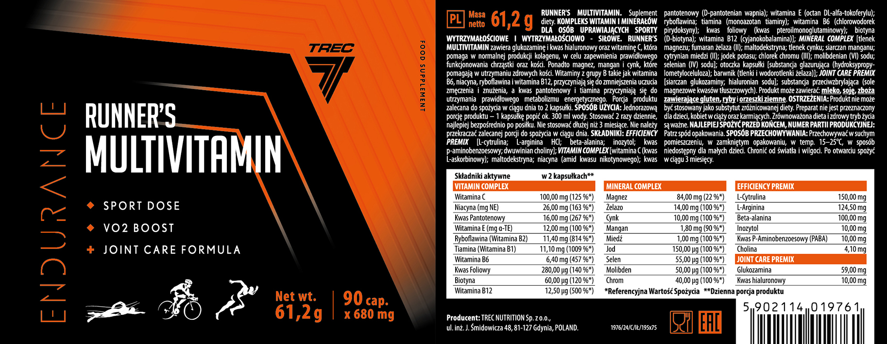 Endurance Multivitamin Trec es un complemento alimenticio presentado en envase de 90 cápsulas que combina vitaminas y minerales en una fórmula orientada a integrarse dentro de rutinas deportivas estructuradas.