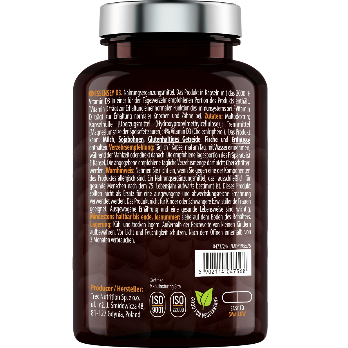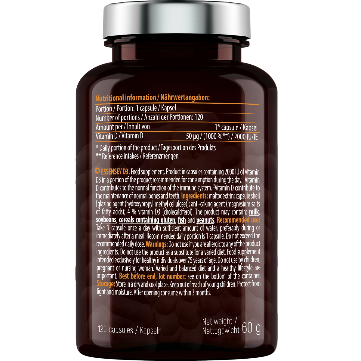 En conjunto, la D3 Essensey representa una opción práctica para quienes desean complementar su alimentación con vitamina D en cápsulas, manteniendo el control sobre la ingesta diaria y adaptándola a sus propias necesidades.