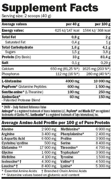 Mezclar 30 g de HD Casein Amix Pro® con 200–250 ml de agua o leche.