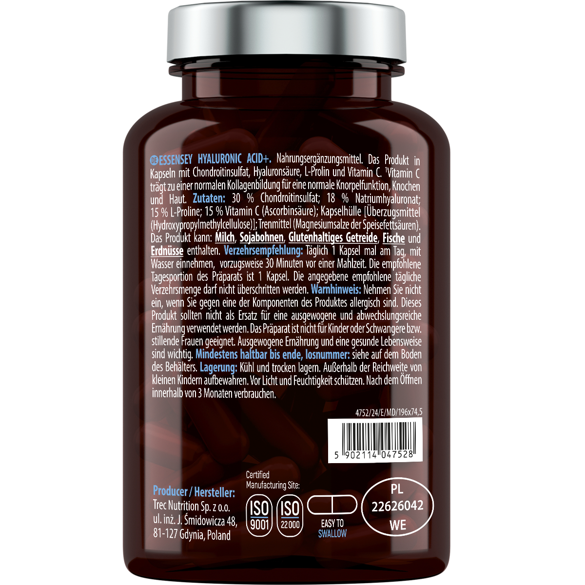 En conjunto, la Hyaluronic Acid Essensey representa una opción práctica para quienes desean añadir ácido hialurónico en cápsulas a su rutina diaria, manteniendo el control sobre la ingesta y adaptándola a sus propias necesidades.