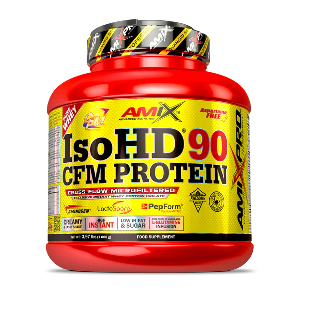 La ISO HD 90 CFM Amix Pro® es una proteína aislada de suero diseñada para deportistas que buscan máxima pureza, rápida absorción y un aporte proteico eficaz para fases de definición o entrenamientos exigentes. Está elaborada mediante el proceso CFM® (Cross-Flow Microfiltration), que permite obtener una proteína de gran calidad con niveles muy bajos de grasas, carbohidratos y lactosa.