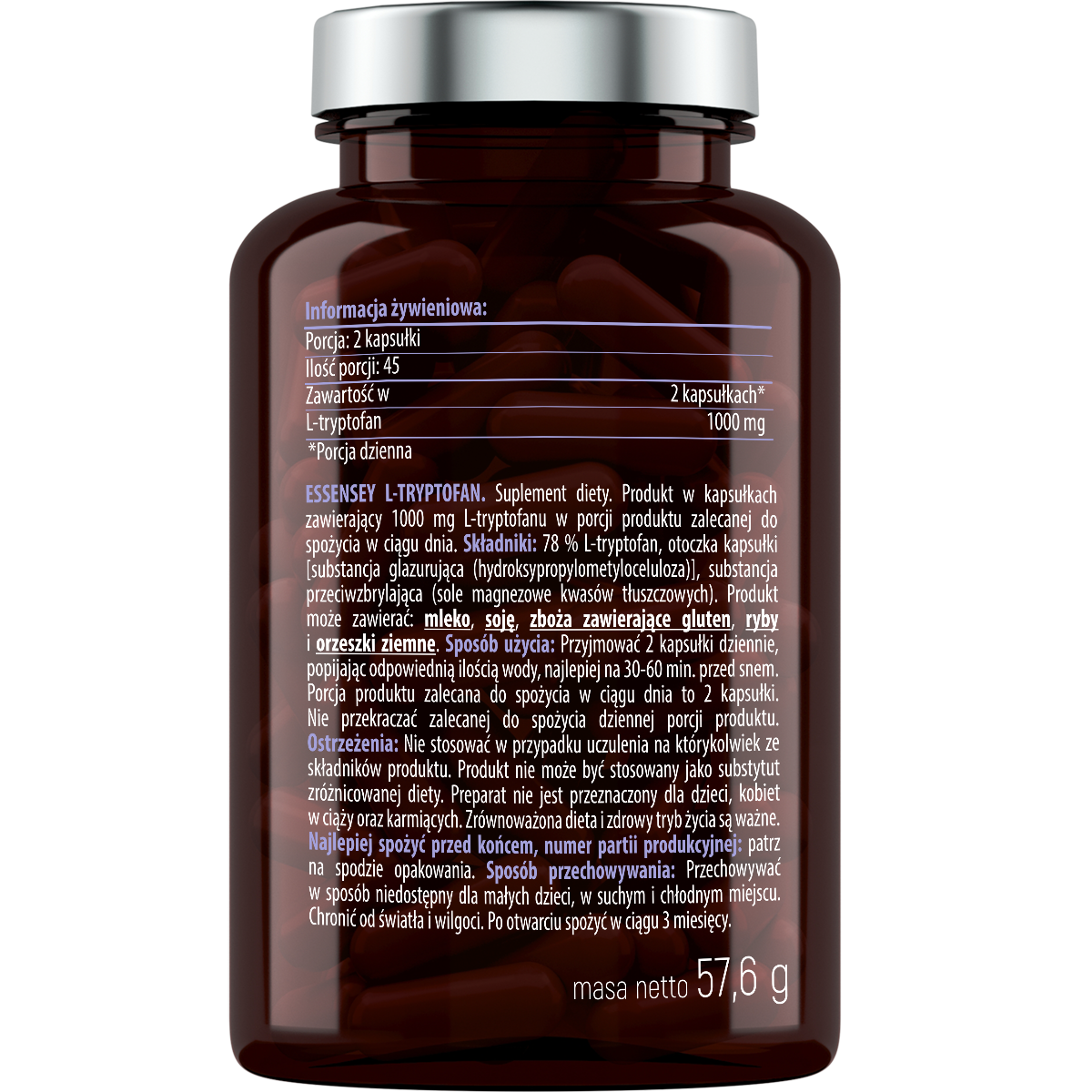 L-Tryptophan Essensey – 90 cápsulas. Complemento a base de L-triptófano orientado al bienestar mental y al descanso.