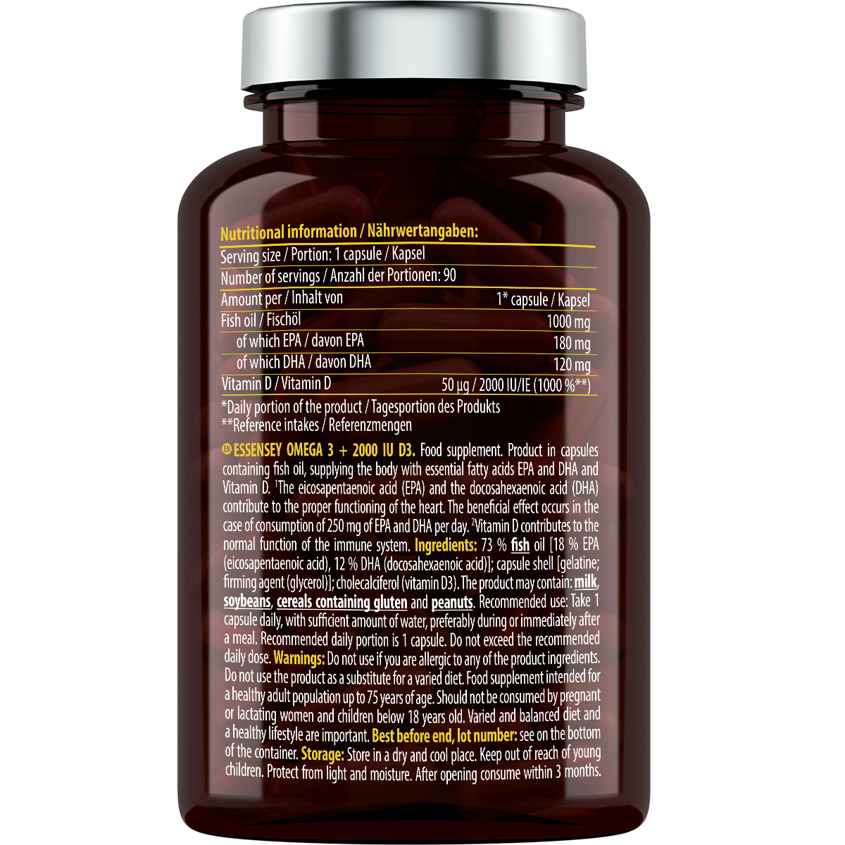Omega 3 + 2000 IU D3 90 cápsulas | Essensey