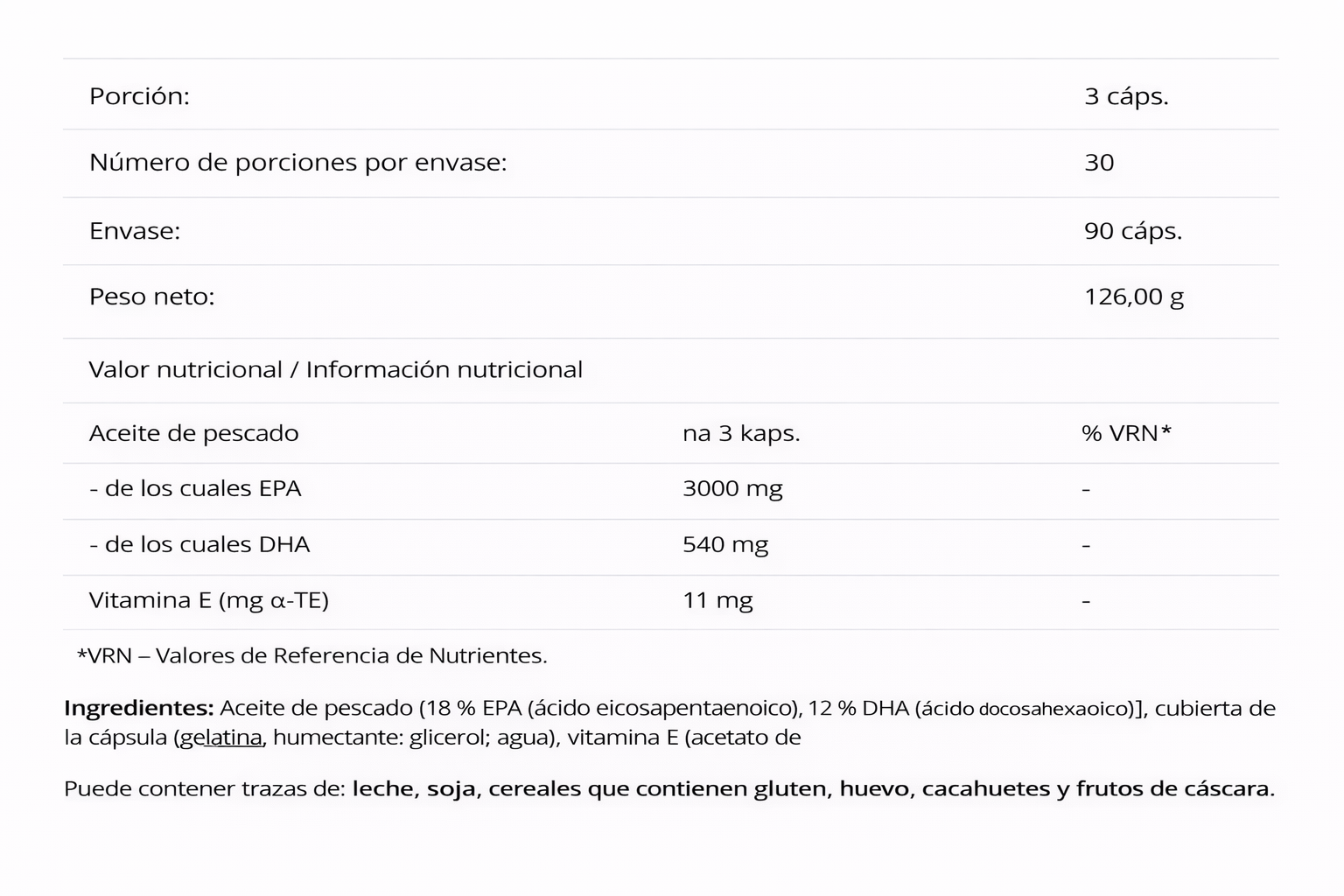 • Complemento con ácidos grasos omega-3