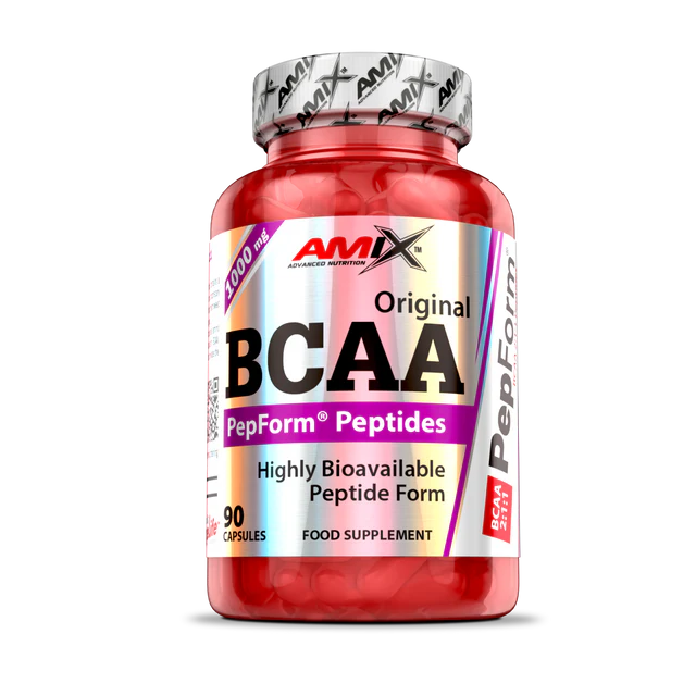BCAA PepForm Amix es un complemento alimenticio en cápsulas desarrollado por Amix™, formulado con péptidos de aminoácidos ramificados BCAA PepForm®. Este producto se presenta en un envase de 90 cápsulas, ofreciendo una alternativa práctica y cómoda dentro de la categoría de aminoácidos en cápsulas.