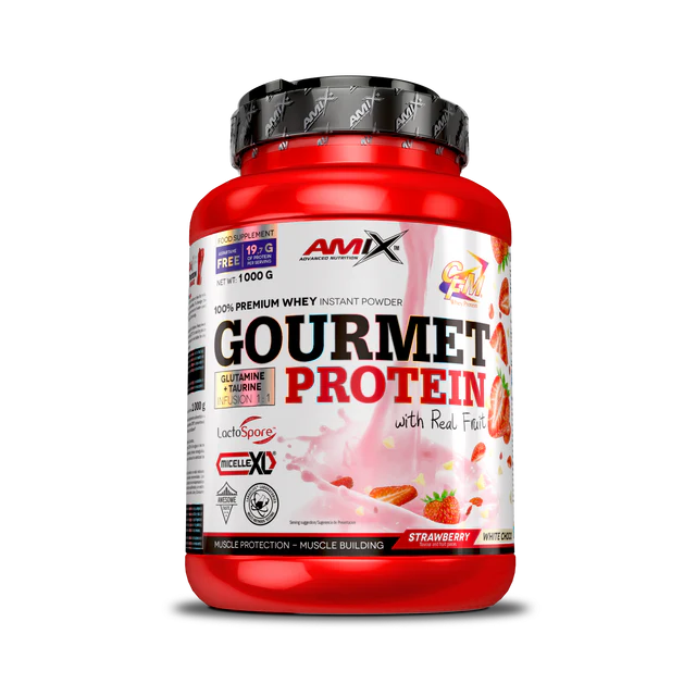La Gourmet Protein Amix™ 1 kg es una proteína de suero diseñada para deportistas que buscan un buen aporte proteico diario, una digestión cómoda y, además, un sabor superior. Está elaborada con proteína whey de alta calidad, lo que la convierte en una opción eficaz para apoyar el crecimiento y el mantenimiento de la masa muscular.