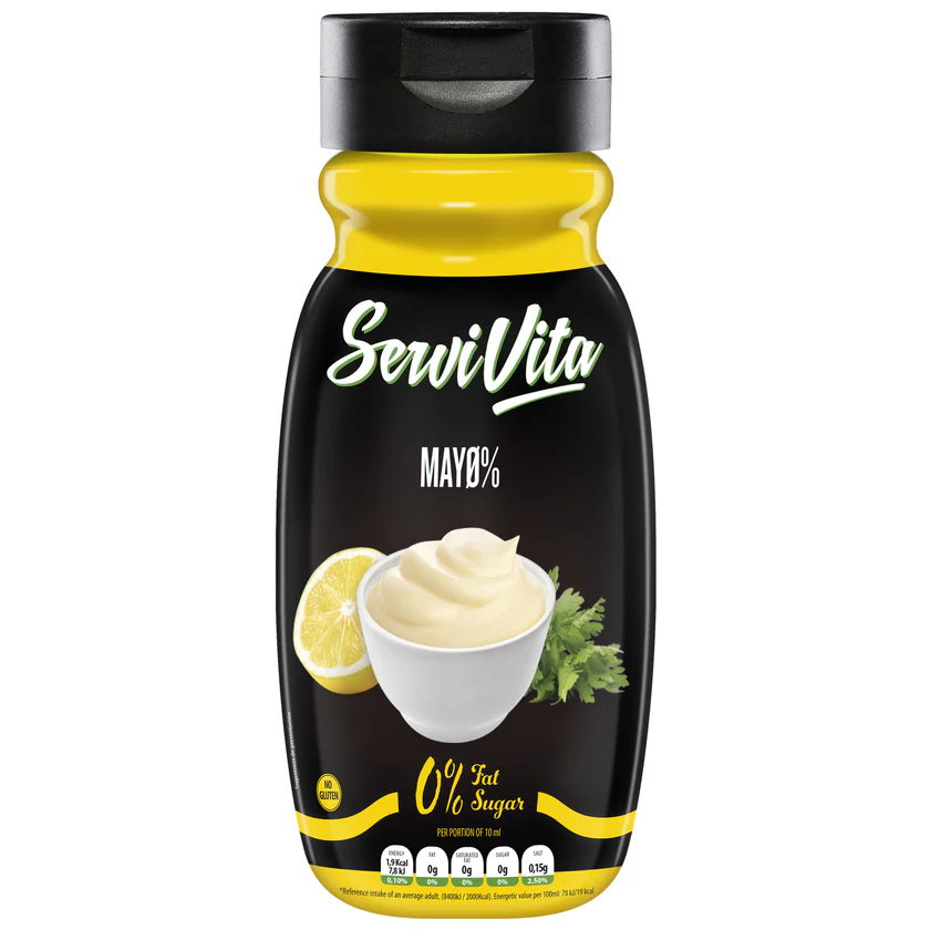 La Salsa Zero Mayonesa de Servivita es una salsa sin azúcar diseñada para ofrecer la cremosidad y el sabor clásico de la mayonesa, pero adaptada a planes de alimentación orientados al control calórico.