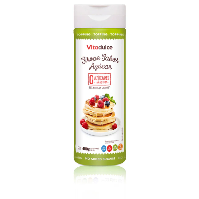 Sirope Sabor Azúcar Vitadulce 400 g. Formato práctico y fácil de usar para aportar dulzor a postres, bebidas y recetas dulces.