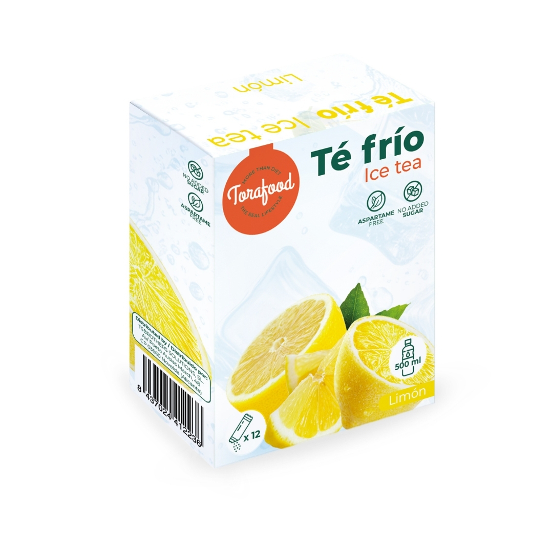 Torafood Té Frío 36g (12 x 3g). Bebida en polvo en sachets individuales disponible en sabores limón, mango y melocotón.
