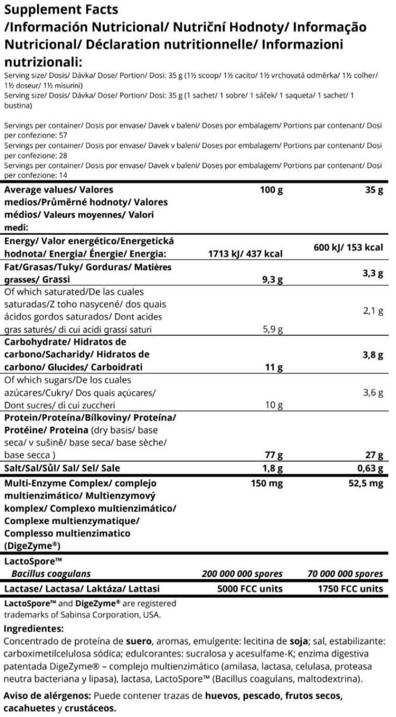 El formato de 35 g es ideal como monodosis o para probar sabores. El tamaño de 500 g se adapta a consumos moderados. El envase de 1000 g ofrece un equilibrio entre duración y practicidad. Por último, el formato de 2000 g está orientado a quienes consumen proteína de manera regular dentro de programas de entrenamiento continuados.