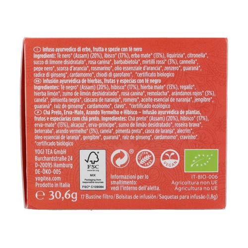 Yogi Tea Energía Positiva Arándanos Rojos Hibisco | 17 Bolsitas de Infusión